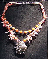 Coral Treasure - 99.9% pure silver pendant, peach aventurine (beads and bricks) pink coral, pink moonstone, freshwater pearls, sterling silver findings and wire clasp